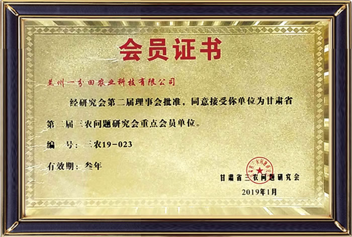 蘭州一分田農業科技有限公司是甘肅省三農問題研究會重點會員單位
